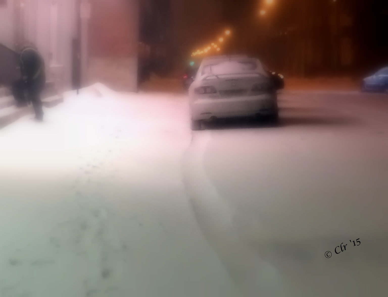 I feel a bit silly after writing my love of spring weather and embracing that “feel good” ambiance on my way to work this afternoon…hence the tanka, Love is in the air.  As I stepped out tonight to come home at  22:00, this is what I saw…I felt like writing a poem starting with SNOW is a 4-letter word but decided to turn this into an opportunity and write a more thought-provoking “free style” haiku for this haiga festival.