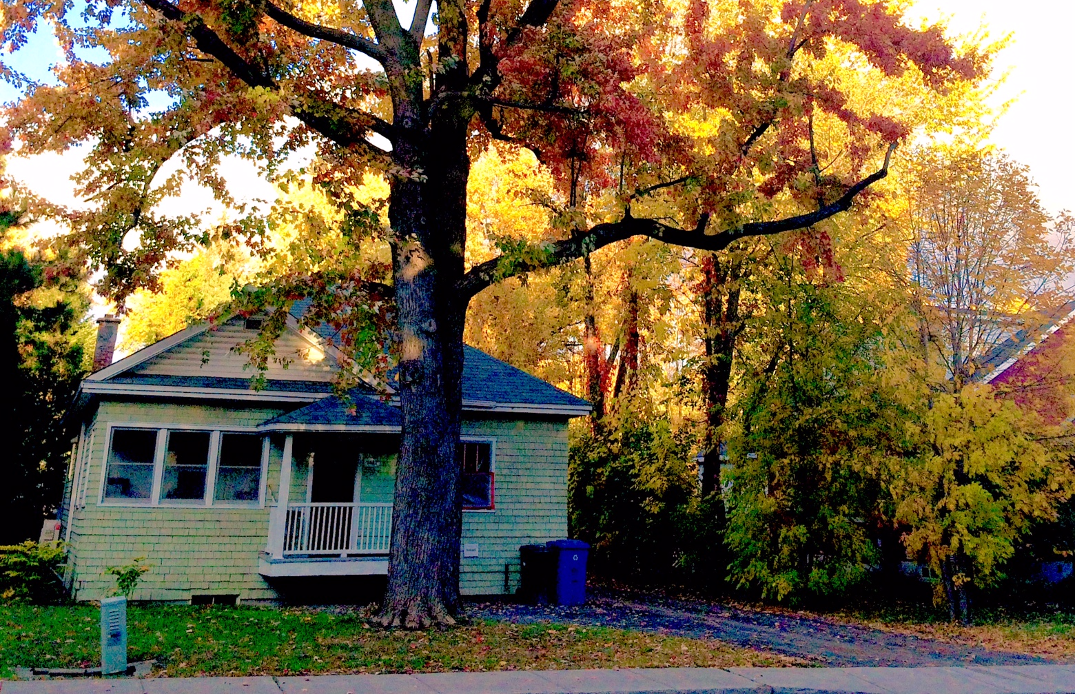 bus stop vibrant colours house