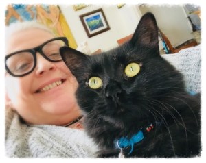 She feels blessed. Her other cat with her hypnotic eyes also comfort her. She is truly a lucky woman.